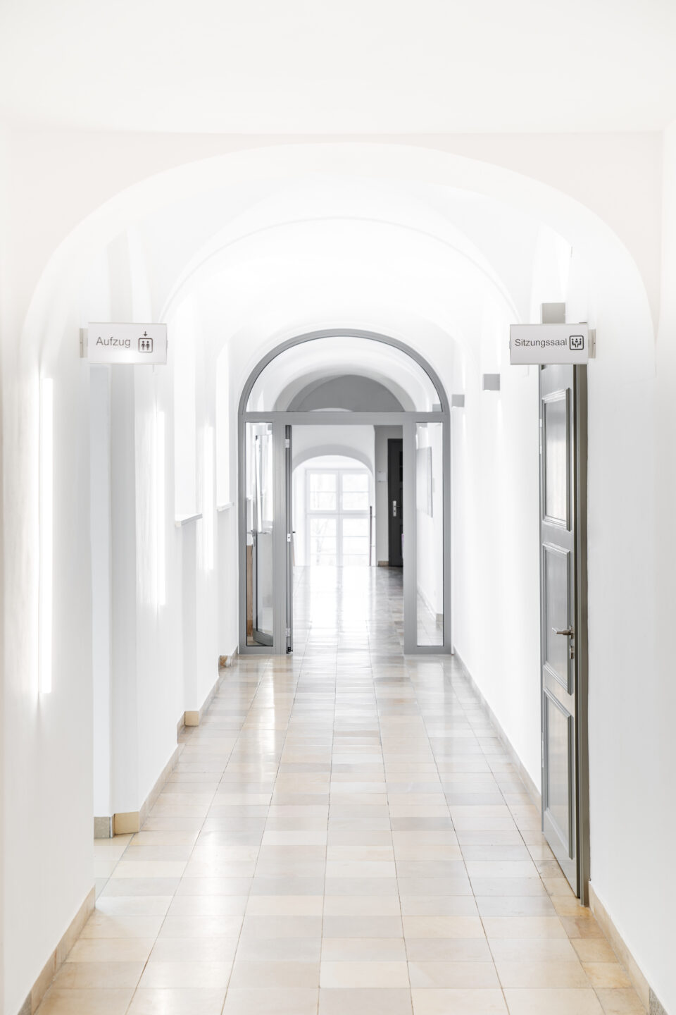 Sanierung und Umbau des Rathauses in Plößberg mit finanzieller Unterstützung der Städtebauförderung. Herstellen der Barrierefreiheit durch einen rückwärtigen Anbau mit Aufzug, Treppenraum und neuem behindertengerechten Eingang. Umbau und Neugestaltung des Sitzungssaals, des Bürgermeisterzimmers, des Trauzimmers und von Büroräumen im laufenden Betrieb. Erarbeiten und Umsetzen des Brandschutzkonzeptes.